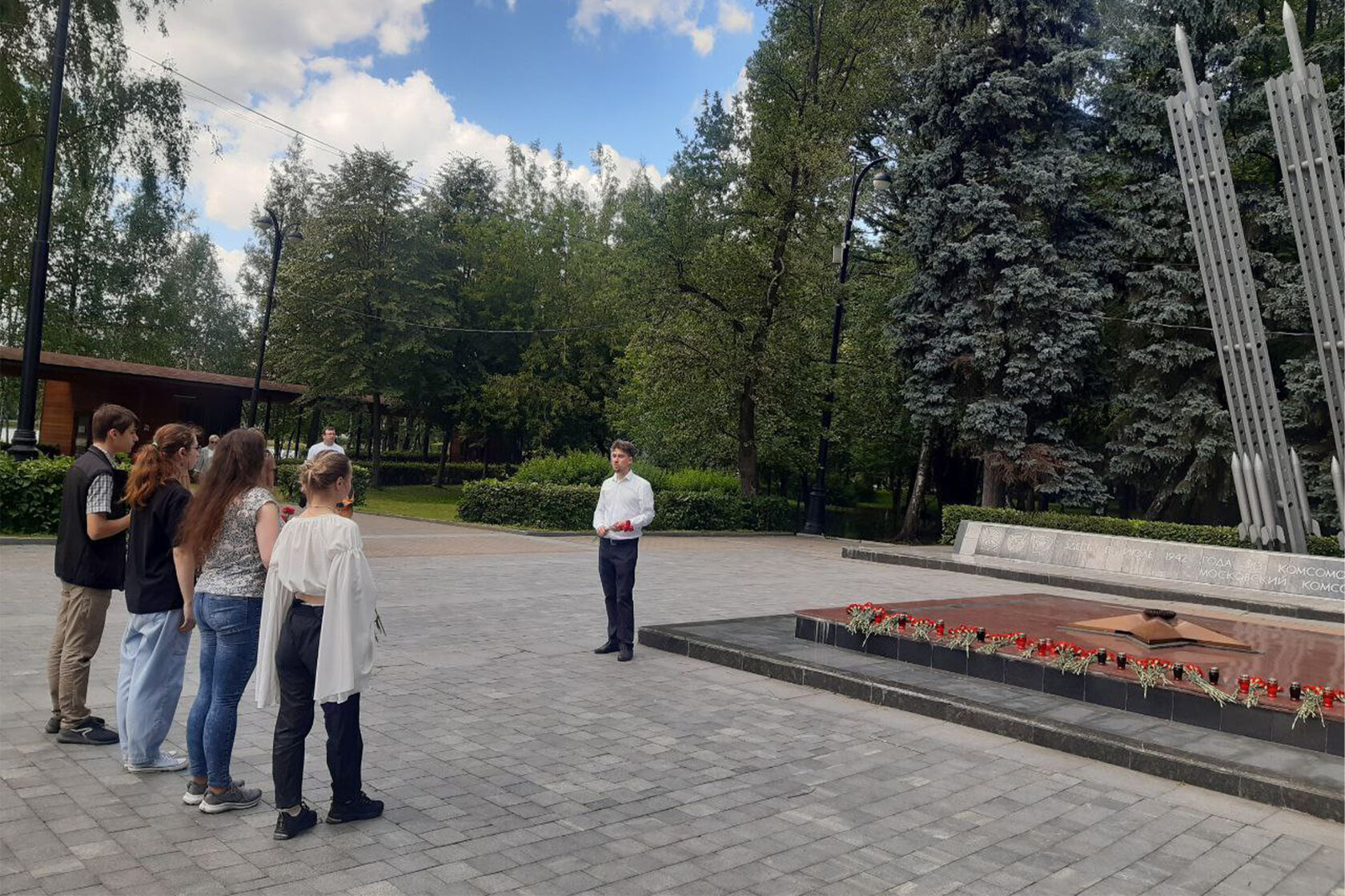 ОМС Мосприроды при поддержке ГАУ АОП по проекту «СО-действие» организовали открытый урок вальса, совмещенный с патриотическо-исторической экскурсией и возложением цветов в память о выпускниках школ и училищ, ушедших добровольцами на фронт. Возложение цветов происходило к памятнику комсомольцам-добровольцам на Площади Мужества в Измайловском Парке культуры и отдыха. После вальса приглашенный экскурсовод провела экскурсию по мемориалу.